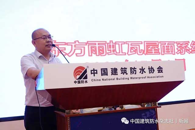 中國建筑防水協(xié)會瓦屋面技術(shù)分會輪值會長、邯鄲市瓦德新型建材有限公司董事長謝富強(qiáng)代表協(xié)辦單位致辭。