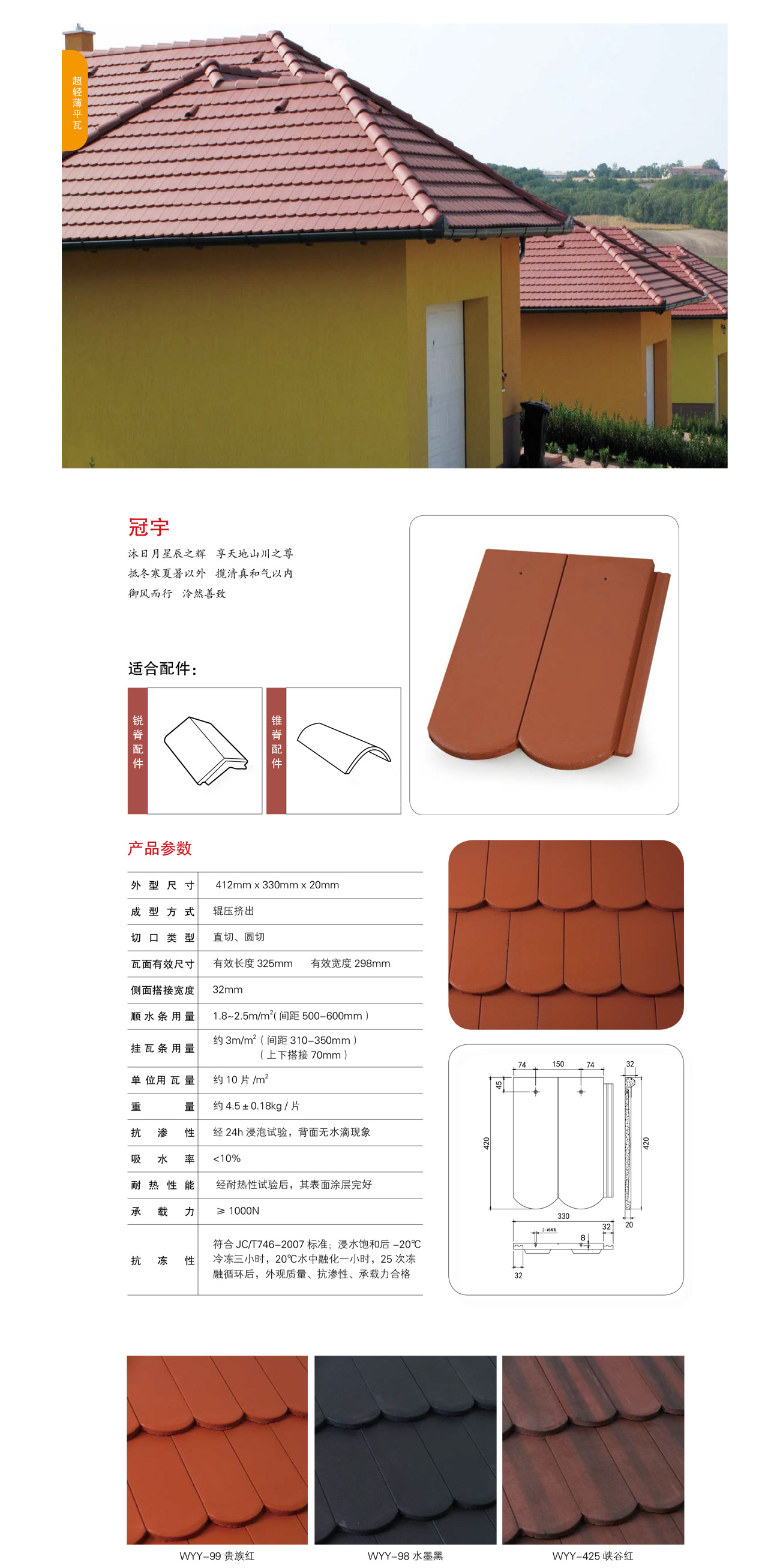 當(dāng)前位置:網(wǎng)站首頁(yè)>>產(chǎn)品介紹>>瓦德彩色混凝土瓦>>冠系列輕薄平瓦